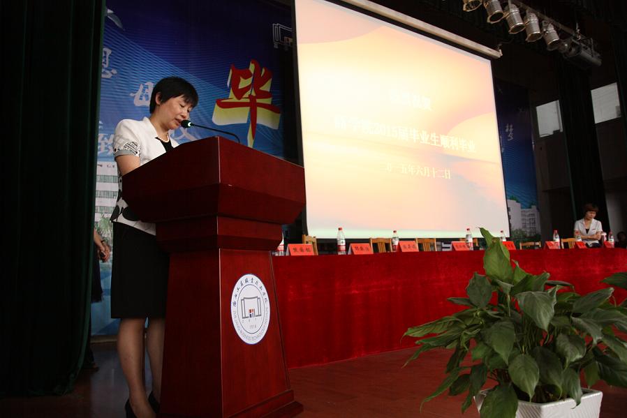 6月12日上午,公司2015届毕业生毕业典礼在博学楼报告厅举行。本次典礼由副经理单祖明老师主持,公司党委副书记、副董事长周志春、员工处处长励业、教务处副处长陈铃俐、商公司经理王若明、党总支副书记沈央珍、经理助理周井娟、各部门负责人、教师代表、2015届七百余名毕业生一同参加了次此毕业典礼。