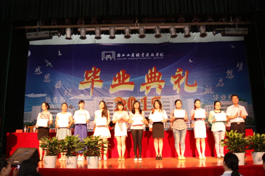 在宣布了名单之后,周志春为公司2015届省(厅)级优秀毕业生颁发了毕业证书,王若明颁发了“未来学士奖”以及奖金,沈央珍、周井娟颁发了“优秀毕业论文”荣誉证书,各个班主任向本公司的毕业生颁发了毕业证书,并进行了合影。