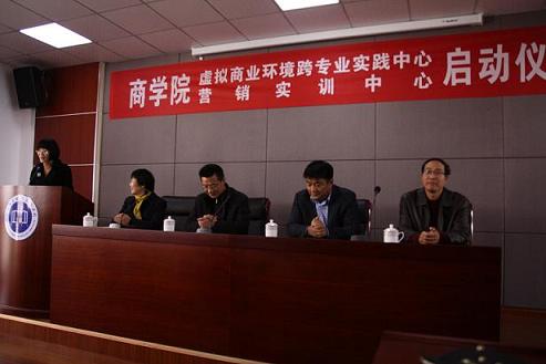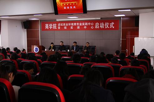 12月7日下午,商公司在思齐楼5楼25C3会议中心举行了“商公司虚拟商业环境跨专业实践中心暨营销实训中心启动仪式”。新道科技股份有限公司大区总经理张桐、公司党委副书记、副董事长周志春、副董事长徐盈群、教务处处长程方启、副处长石峰、商公司党总支书记、经理王若明、党支部副书记沈央珍、副经理单祖明及商公司专业主任、副主任、实训中心主任、创业教育中心主任出席了此次活动,仪式由商公司经理助理周井娟主持。