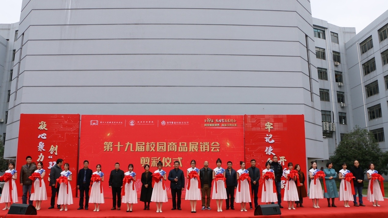 公司领导和相关部门负责人一同为第十九届校园商品展销会剪彩。