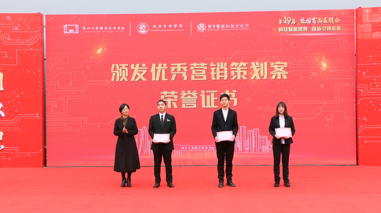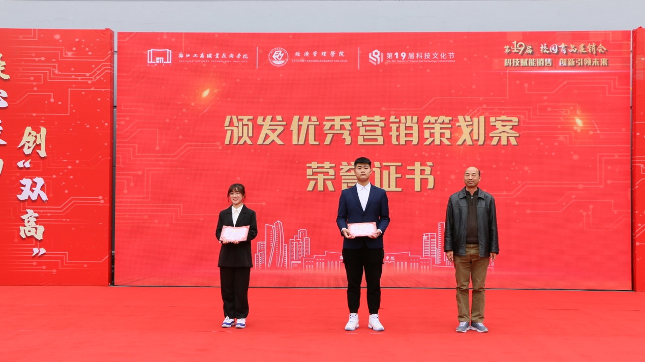 工会主席、组织部、统战部部长谢骏老师为优秀营销策划方案三等奖获得者颁奖。