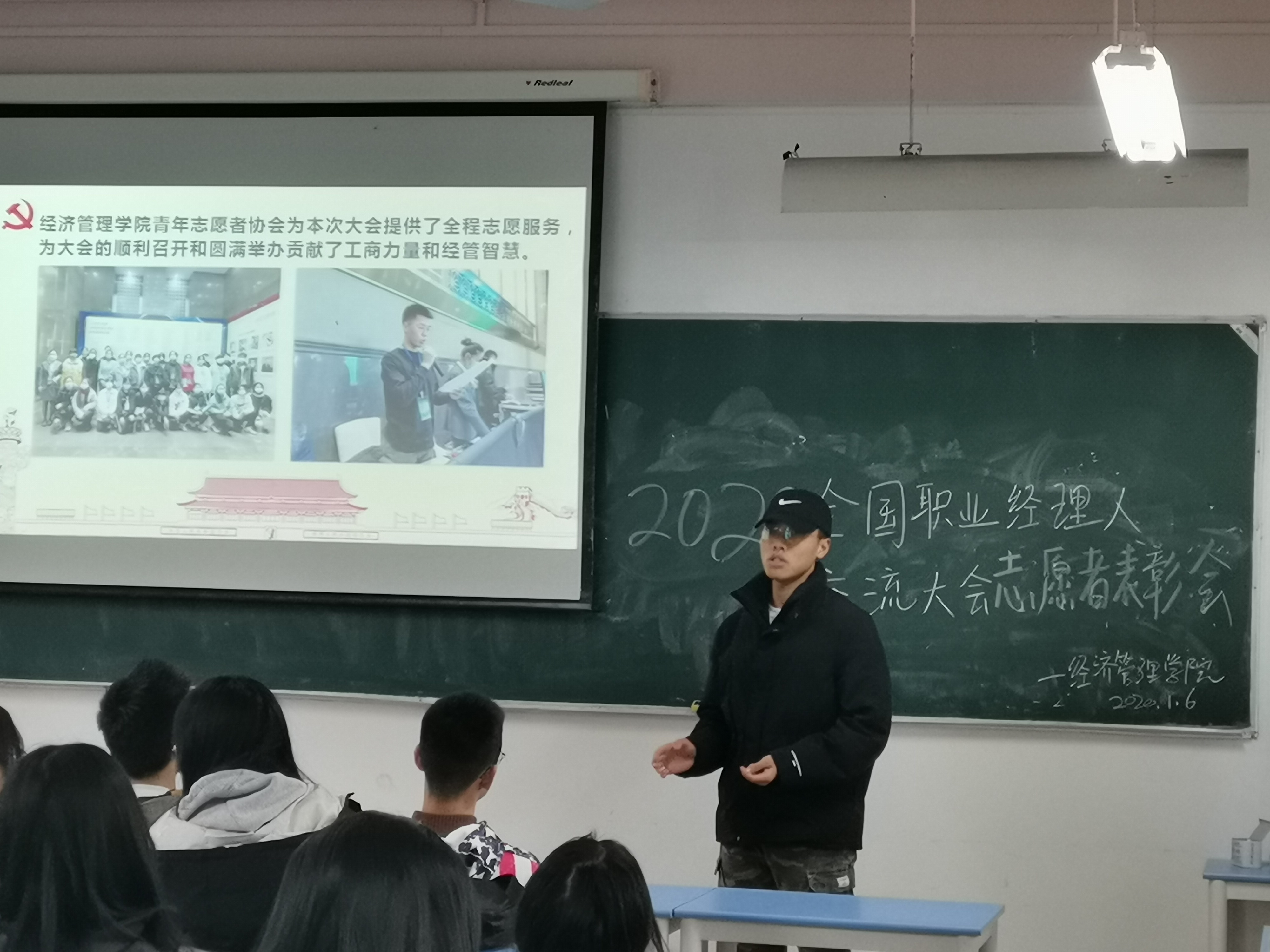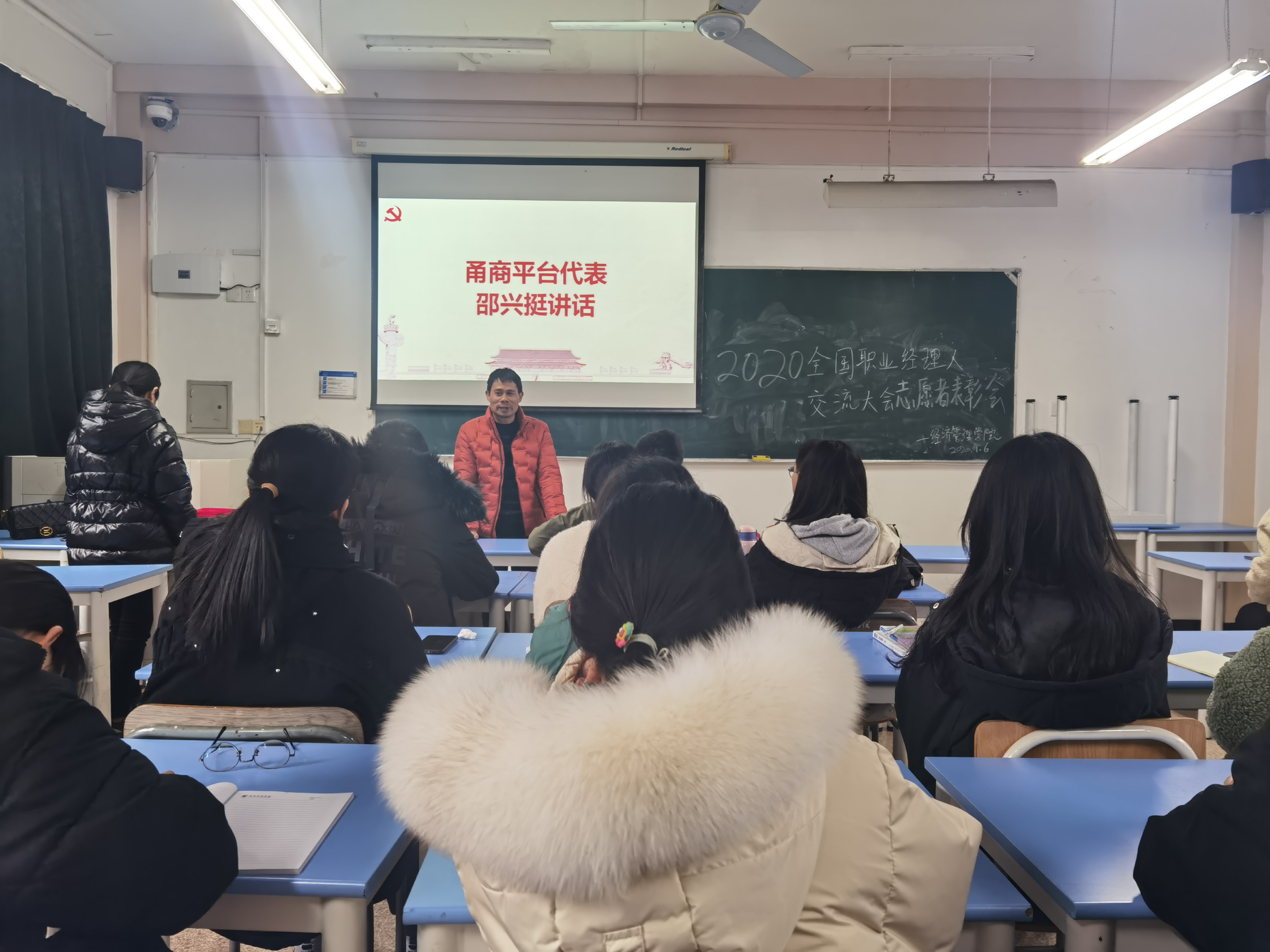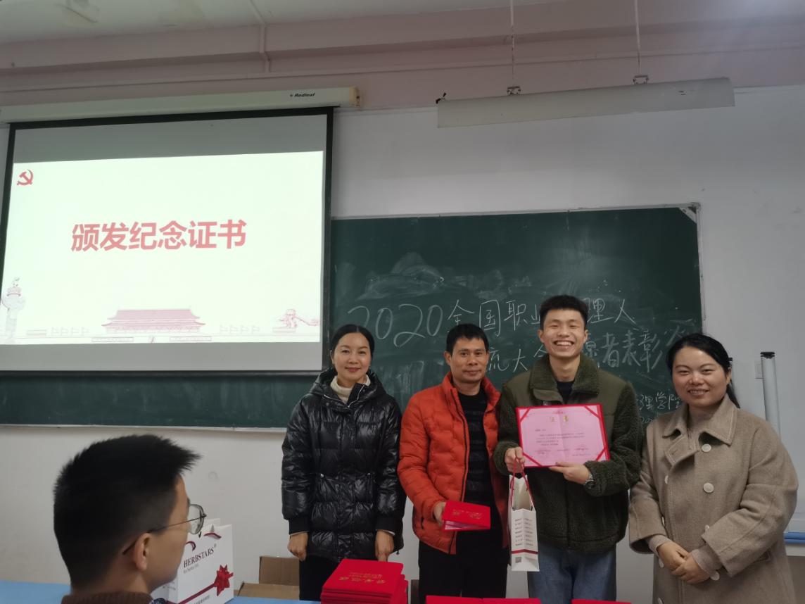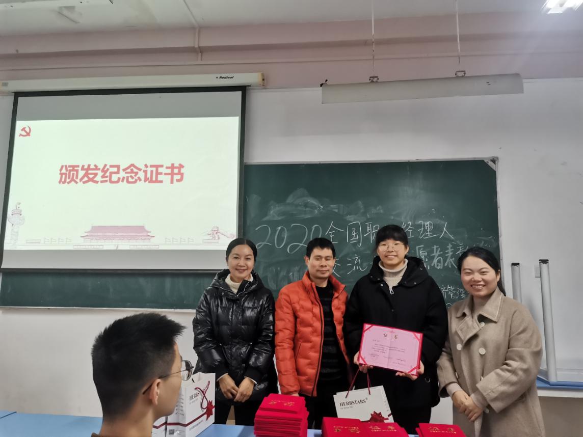 2021年1月6日下午,公司“2020年中国职业经理人交流大会”志愿者表彰大会在12A2教室顺利举行。参加表彰会的有甬商发展研究会副秘书长邵兴挺老师、甬商公共服务平台会员服务中心主任朱亚丽老师、yl23411永利官网登录经理吕洪霞老师、党总支副书记丁佩芬老师、团总支书记唐跃英老师,以及参与2020中国职业经理人交流大会暨全国商帮大会的全体志愿者同学们。
