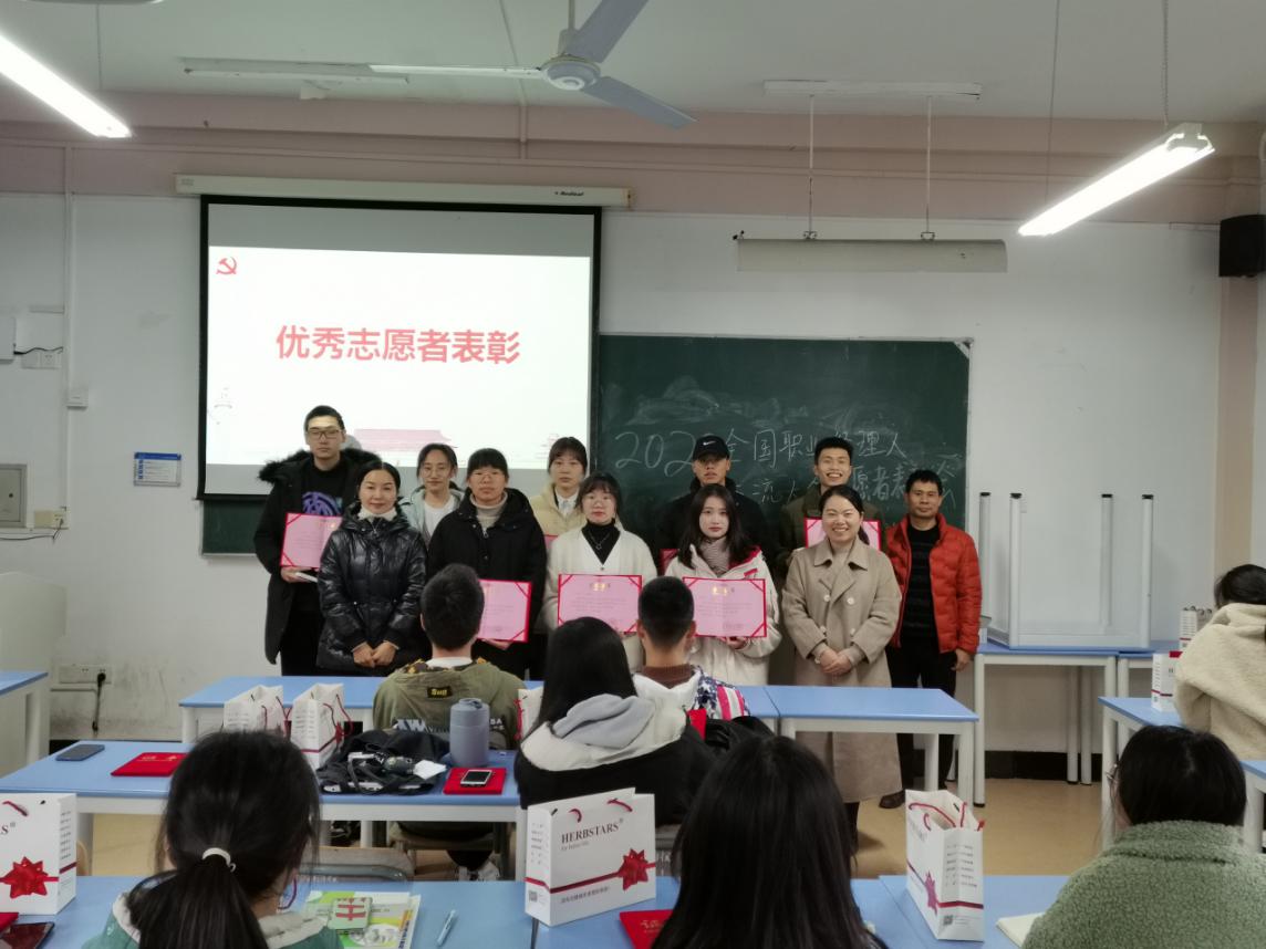 甬商平台为32名志愿者每人准备了纪念证书,同时根据同学们志愿服务工作的表现评选出了8名优秀志愿者。邵老师、朱老师和唐老师共同为志愿者们颁发了证书。