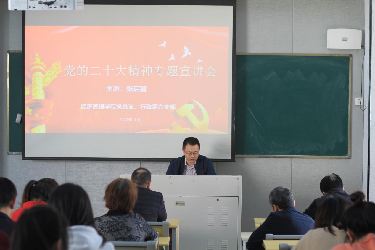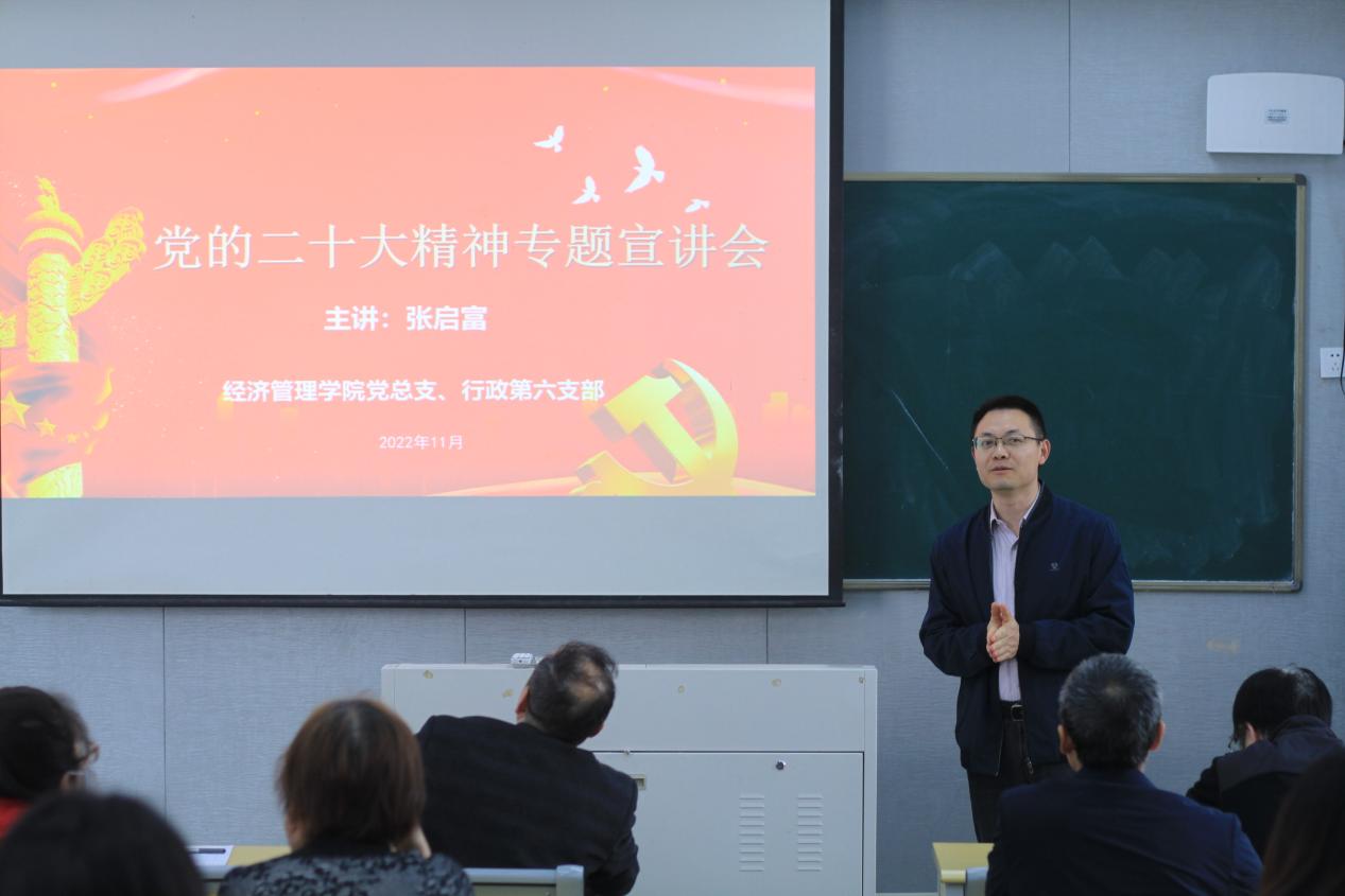 为深入学习领会党的二十大会议报告精神,牢牢把握过去五年工作和新时代十年伟大变革的重大意义,紧扣党的情弦,2022年11月9日下午13:30,公司党委委员、纪委书记张启富在思齐楼23A7教室为yl23411永利官网登录、行政第六党支部全体党员师生做了“党的二十大精神”专题宣讲会。