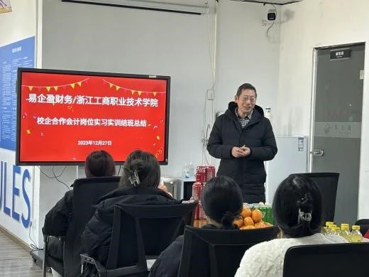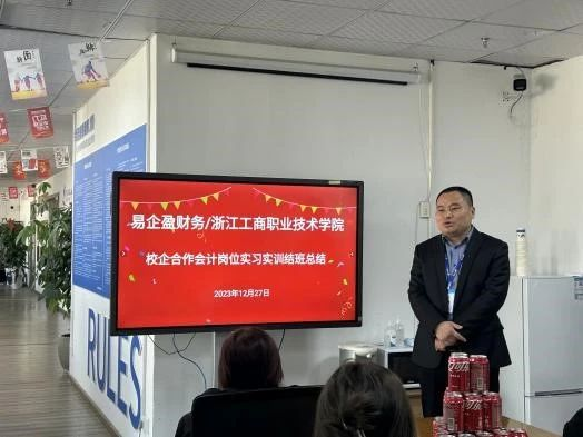 2023年12月27日,公司大数据与会计专业员工岗位实习实训结班仪式在校企合作单位易企盈财务咨询有限公司顺利举行。大数据与会计专业主任郑平老师与王双苗老师、谢君萍老师一行赴易企盈出席结班仪式并进行校企合作深度沟通。