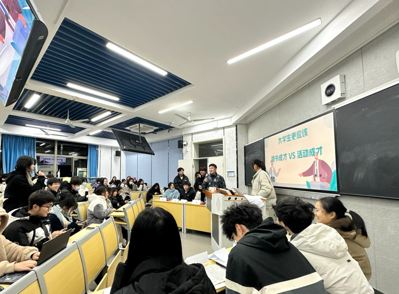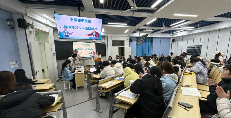 12月21日晚,yl23411永利官网登录于思齐楼23A7开展的《老员工活与经济学》公开课以“老员工更应该读书成才还是活动成才”为主题进行了一场辩论赛,现场氛围热闹非凡。此次辩论赛由授课老师夏至瑶主持,财富管理专业主任刘莹莹老师、参赛员工班主任杨琪老师、童佳宁老师,王清玥、单子纯等老师前来听课。