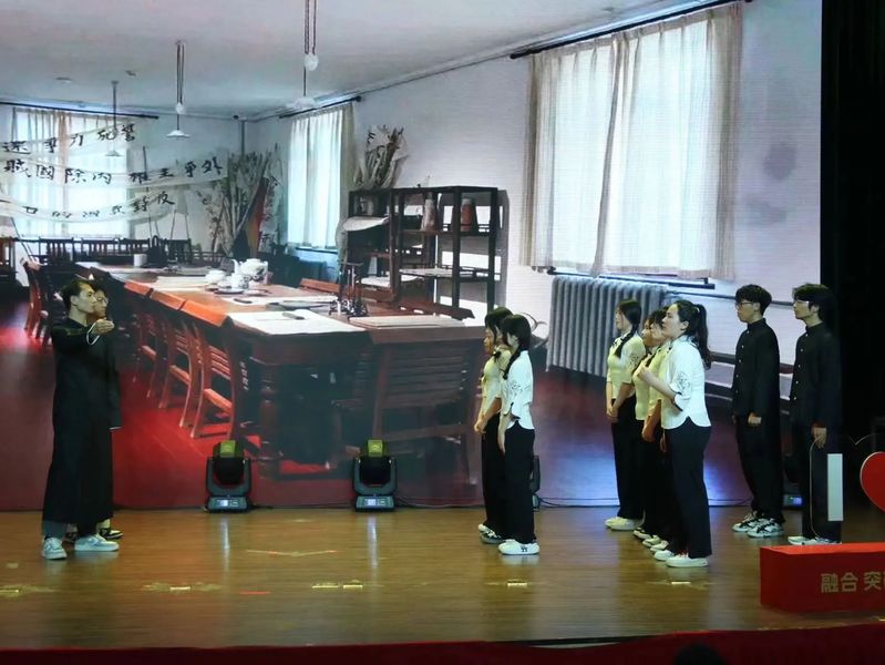 在比赛的背后,是同学们无数个日夜的辛勤付出。从剧本的创作到角色的塑造,从排练时的动作表情到舞台上的表现力,他们都投入了极大的心血。在创作过程中,他们深入研究了1941年的公司历史和波澜动荡的时代背景,以真实的历史背景为基础,巧妙地融入了戏剧冲突,为观众展现了一幅生动的历史画卷。勿忘历史并不是为了记住仇恨,而是为了更好地开创未来。当我们今天再回首八十多年前的那段艰难办学历史,除了感受先辈顽强不屈的精神,更要明白今天我们肩负的使命和责任,誓追先贤之芳踪,身体力行为实现中华民族伟大复兴的中国梦而不断努力奋斗!《1941年的工商》和《觉醒》已经落幕,但我们的热情未减。让我们以更加饱满的激情,迎接下一次挑战,为观众呈现更多精彩的演出。让我们继续前行,书写新的辉煌篇章。