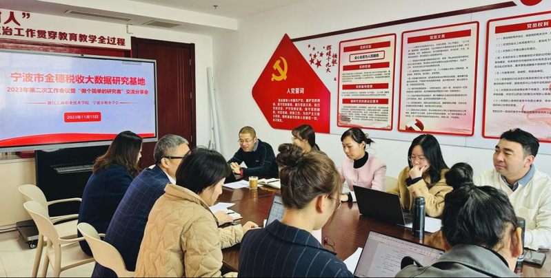 2023年11月15日,宁波市金穗税收大数据研究基地第二次工作会议暨“做个简单的研究者”交流分享会顺利召开。宁波市税务学会秘书处张晨曦赴公司参会,yl23411永利官网登录经理、基地秘书长张旺军、副经理乐敏、基地首席专家钱斌华、基地骨干成员以及yl23411永利官网登录科研培育创新团队成员出席了本次会议。