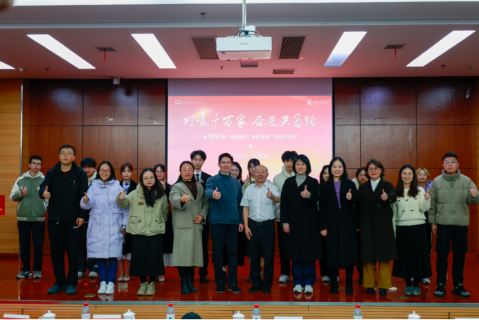 全场师生通过一段精心制作的视频,回顾了百期厚德讲坛的辉煌历程。从最初的萌芽到如今的枝繁叶茂,每一期讲坛都承载着传播知识、启迪智慧、弘扬正能量的使命,见证了无数师生在思想的碰撞中成长进步的足迹。