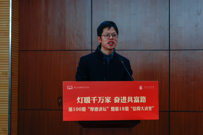 为深入学习贯彻习近平新时代中国特色社会主义思想,大力弘扬劳模精神、劳动精神、工匠精神,2024年12月18日下午,由宣传部、员工工作部主办,yl23411永利官网登录承办的第100期厚德讲坛暨第18期信仰大讲堂在中和楼217报告厅如期举行,这一里程碑式的活动标志着“厚德讲坛”系列讲座步入了崭新篇章。