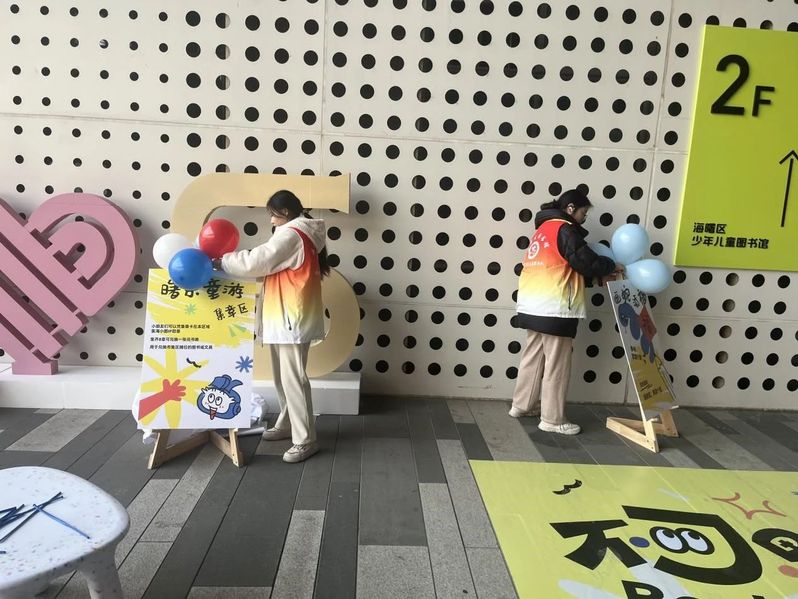 活动现场,志愿者们热情高涨,分工明确,全力协助主办方布置儿童友好市集。在众人齐心协力之下,市集成功举办,现场满是童趣与温馨氛围。