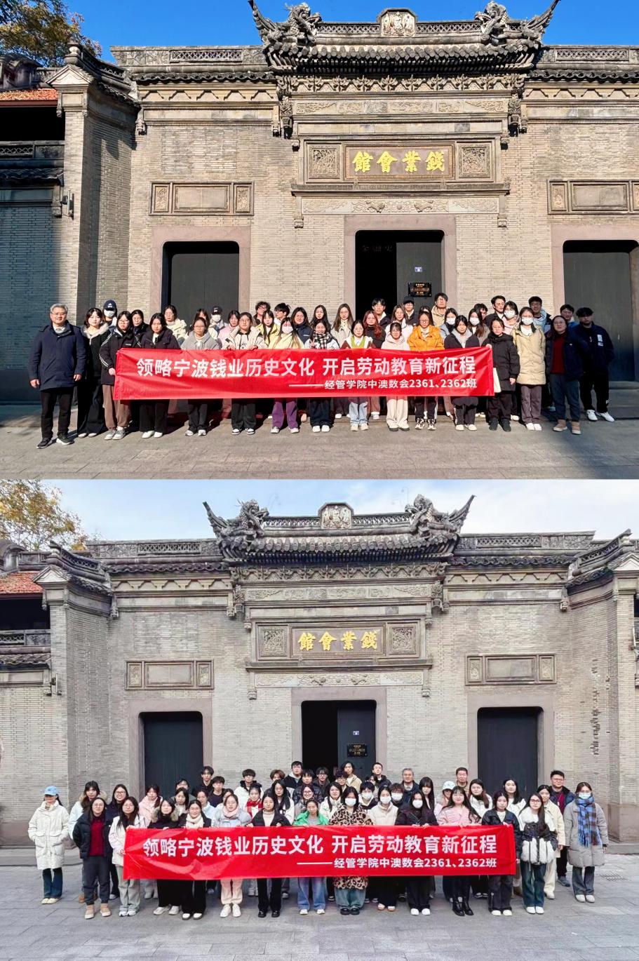 2025年1月8日,yl23411永利官网登录大数据与会计(中外合作)专业的数会 2361、2362 两个班级,在班主任的引领下,前往宁波钱业会馆,开启了一场极具深远意义和独特价值的参观学习活动,以此圆满完成了劳动教育必修课程的实践体验。