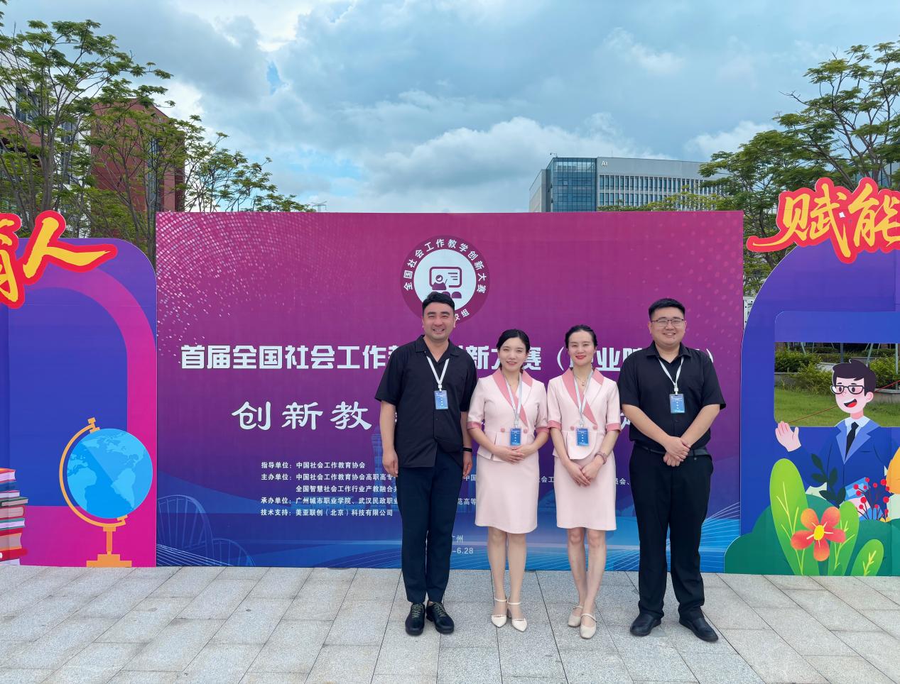 2025 年 6 月 26 日至 28 日,首届全国社会工作教学创新大赛(职业院校组)决赛在广州城市职业公司科教城校区顺利举行,公司社会工作专业张露娜、李旭、王垭轩、王清玥四位教师组成的参赛团队比赛中荣获一等奖以及教学创新团队荣誉。全国社会工作教学创新大赛决赛在中国社会工作教育协会的指导下,由中国社会工作教育协会高职高专社会工作专业委员会、中国社会工作教育协会社会工作实验教学专业委员会、全国智慧社会工作行业产教融合共同体联合主办。广州城市职业公司、武汉民政职业公司、贵阳幼儿师范高等专科公司作为承办单位,为大赛提供了坚的后勤保障和组织支持。美亚联创(北京)科技有限公司作为技术支持单位,为大赛的顺利进行提供了先进的技术支持。各方携手,共同为这场盛会的成功举办保驾护航,体现了职业教育领域在资源整合、协同创新方面的强大合力,为大赛的成功举办奠定了坚实基础。